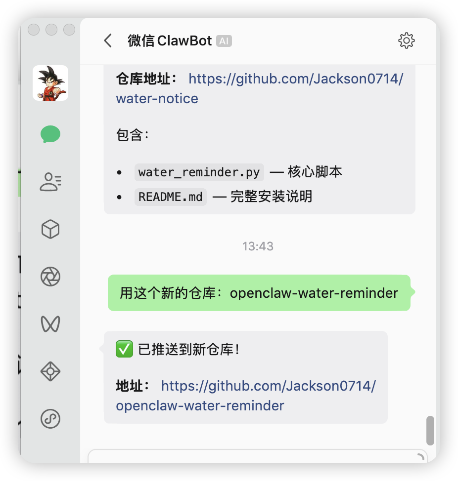 工具的源码仓库地址:https://github.com/Jackson0714/openclaw-water-reminder
