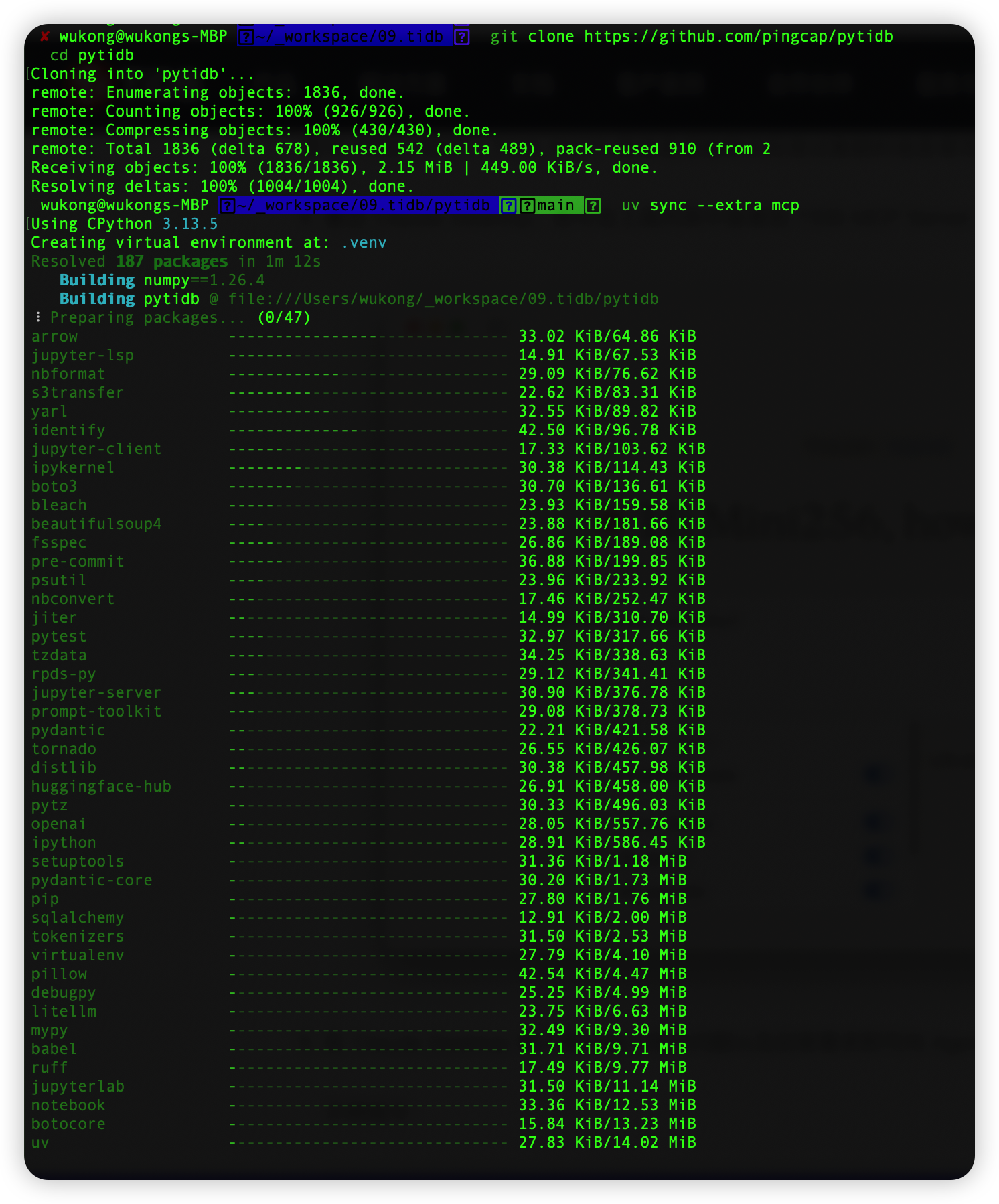 git clone https://github.com/pingcap/pytidb