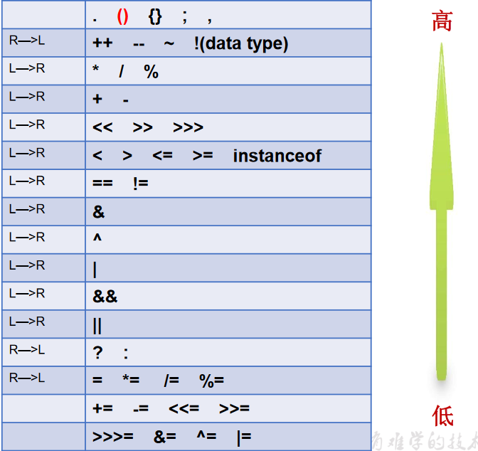 - 只有单目运算符、三元运算符、赋值运算符是从右向左运算的。