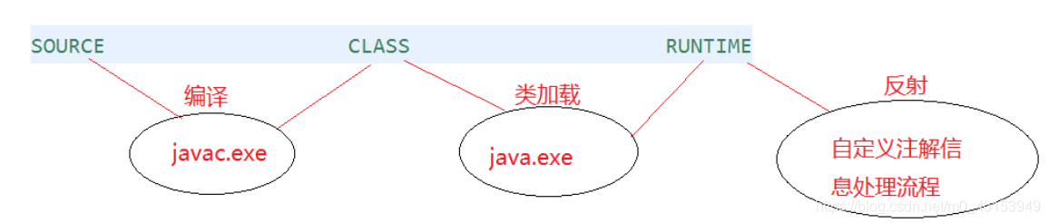 Annotation类型被定义为运行时Annotation后, 该注解才是运行时可见, 当class文件被载入时保存在class文件中的Annotation才会被虚拟机读取 - 程序可以调用