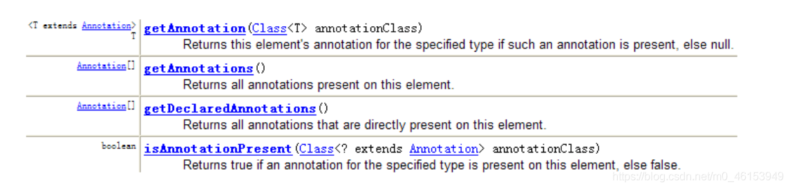 AnnotatedElement对象的如下方法来访问Annotation信息