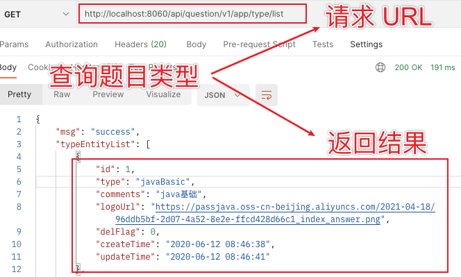 先自定义一个 Rest API 用来查询题目类型列表,数据是从数据库查询出来后直接返回给前端。