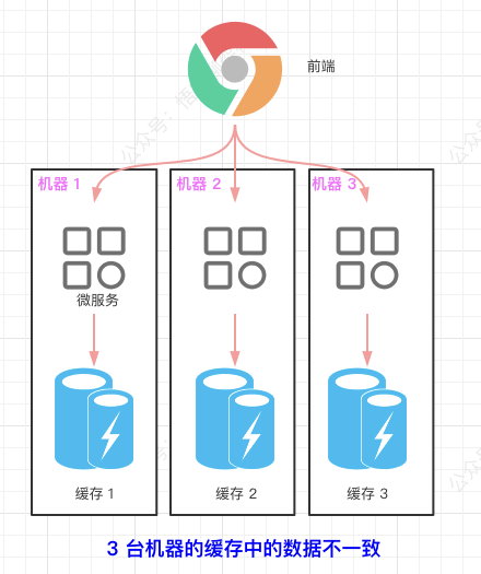 - 同一台机器中的多个微服务缓存的数据不一致。