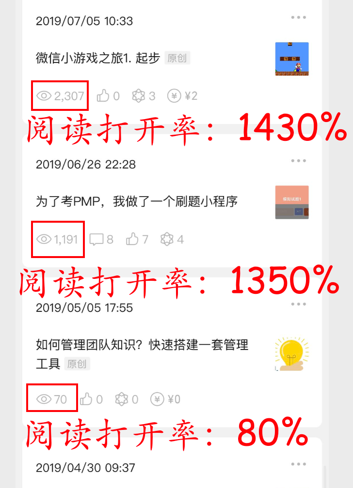 虽然粉丝少,但也写过两篇爆款文章,在粉丝只有 88 个点时候,粉丝阅读打开率 1350%,高得离谱,但原因未知。另外那个时候的文章非常青涩~