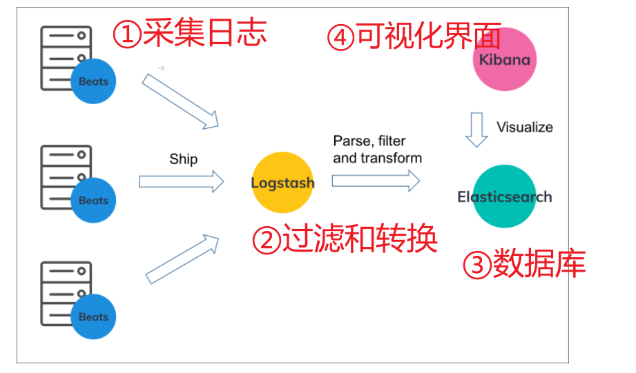 比如我们的应用系统通过 logback 把日志写入到磁盘文件,然后通过这一套组合的中间件就能把日志采集起来供我们查询使用了。