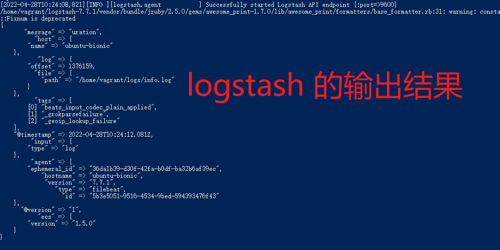 logstash 输出结果如下,会有格式化后的日志: