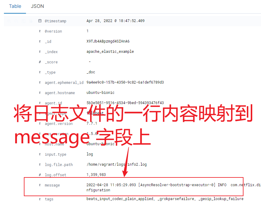另外注意下 logstash 中的 grok 过滤器,指定的 message 的格式需要和自己的日志的格式相匹配,这样才能将我们的日志内容正确映射到 message 字段上。