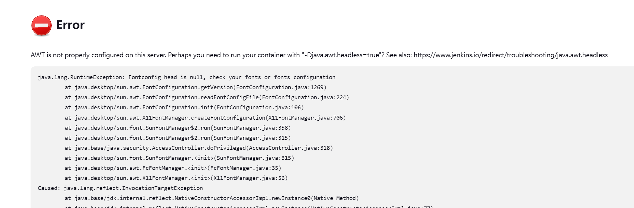 java.lang.RuntimeException: Fontconfig head is null, check your fonts or fonts configuration