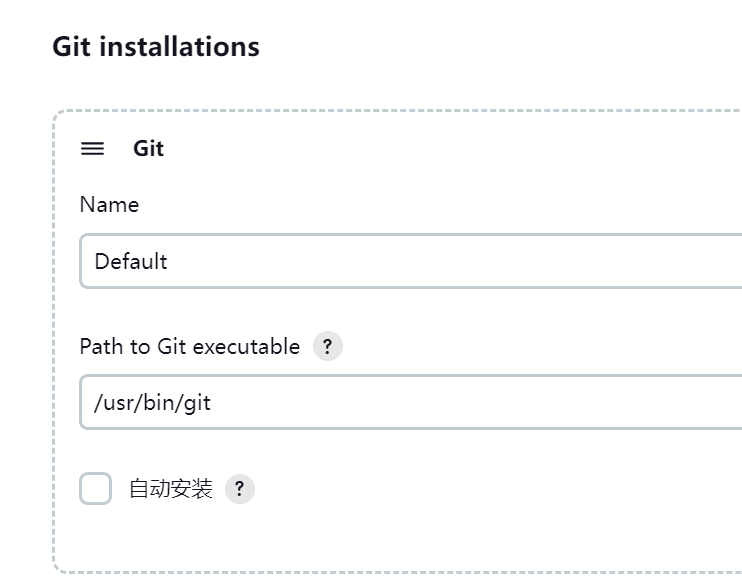 在 Jenkins 后台系统管理->全局工具配置中添加 Git 配置,如下图所示: