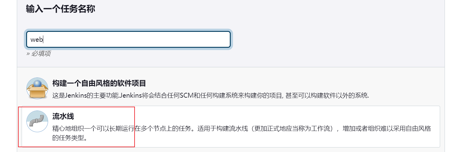 提示:Pipeline 任务代表了Jenkins的未来方向,提供了更高级的自动化构建能力,而自由风格项目则适合快速设置简单的构建任务。随着Jenkins的发展,越来越多的用户和组织倾向于使用Pipeline任务来实现更高效的自动化流程。