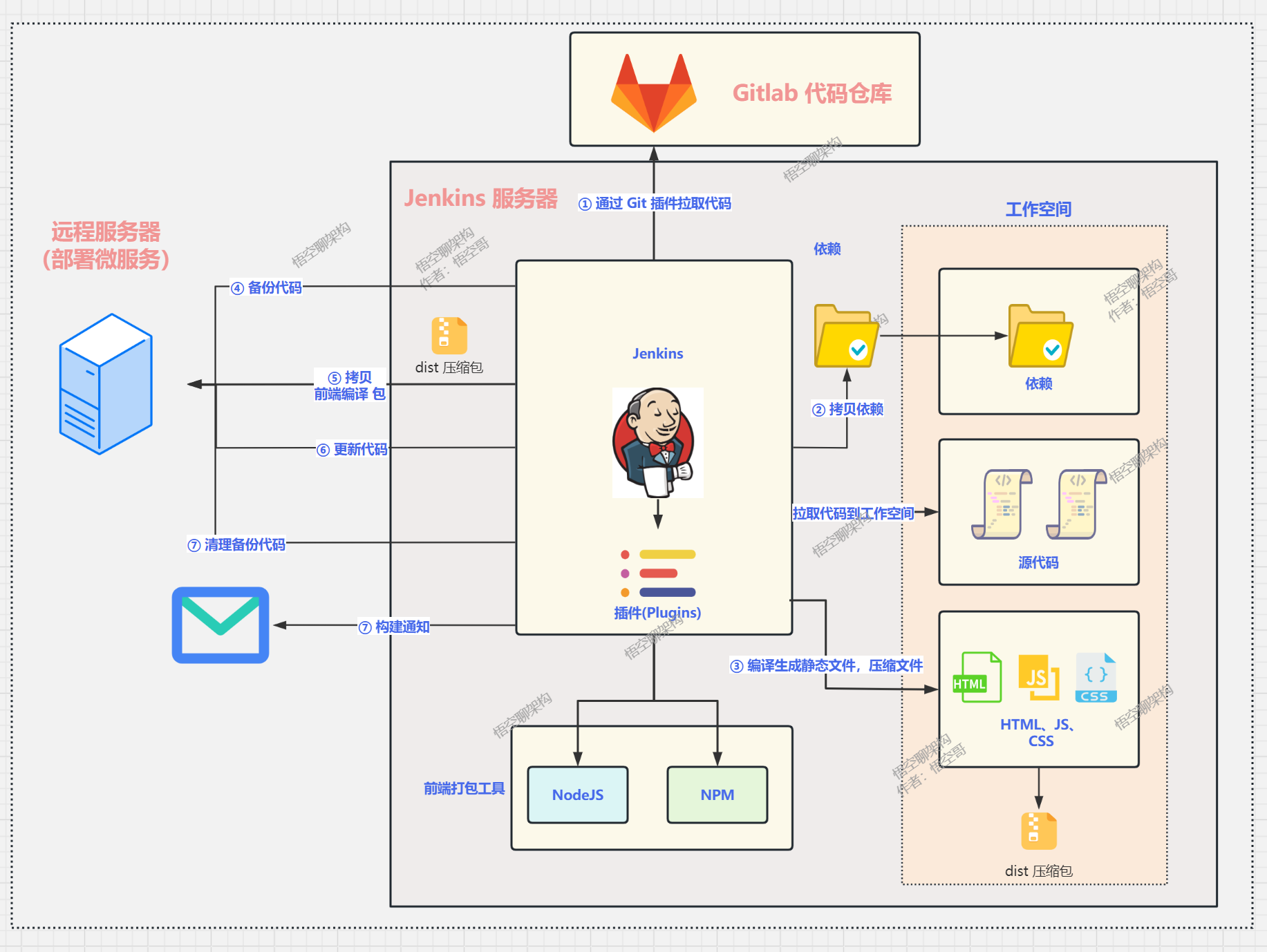 本文通过图解+代码的方式讲解了前端自动化部署的步骤,文中的脚本针对前端的三个模块进行打包,比较耗时,所以后续可以优化的地方是支持选择部署前端的不同模块。