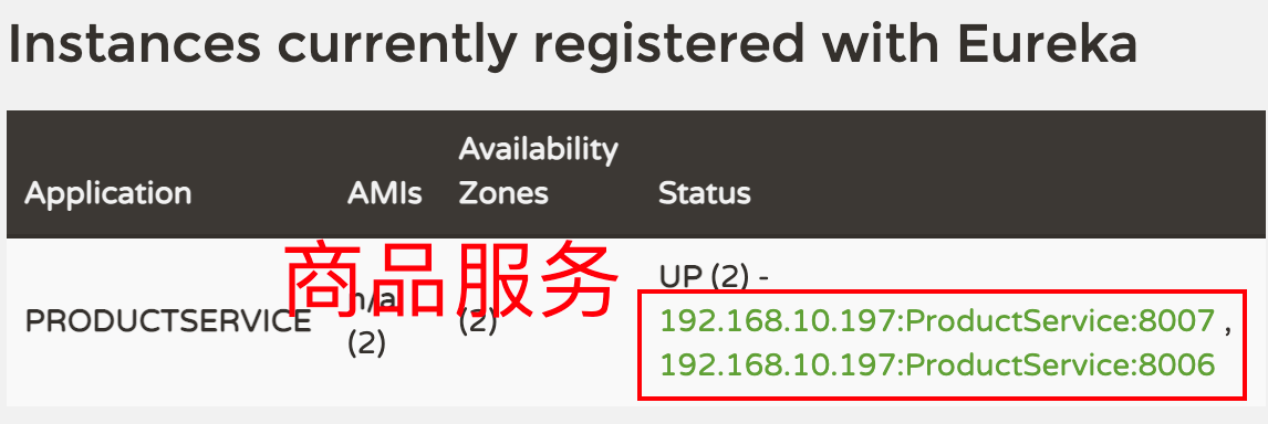 Eureka 控制台可以看到两个商品服务已启动。