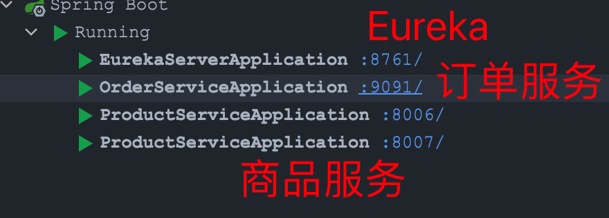 Eureka + 商品服务 + 订单服务 的演示案例已经完成。