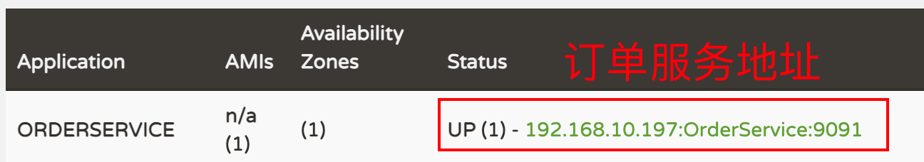 可以在 eureka 控制台看到订单服务在注册列表上。