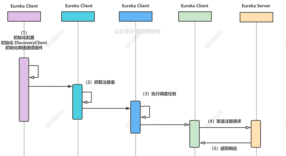 (1)Eureka Client 初始化了一个 DiscoveryClient,抓取注册表,执行调度任务。