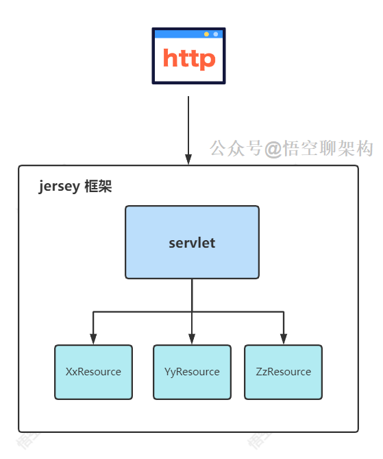 可以把 jersey 类比 mvc 框架,jersey 有 servlet 专门处理 http 请求。引用 jersey 框架的地方: