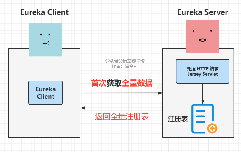 - 对于 Client 端来说,首次获取注册表时就会全量抓取注册表,存在自己本地。