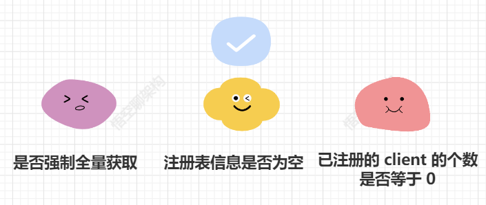 - 条件三:获取已注册的 client 的个数是否等于 0。是的,需要全量获取。