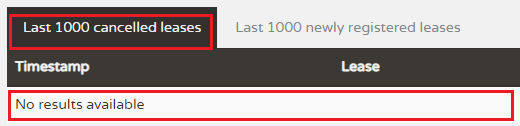 Last 1000 cancelled leases 这个列表里面会显示最近 1000 个取消的租约。
