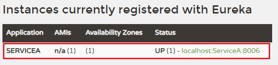 状态:UP (1) - localhost:ServiceA:8006