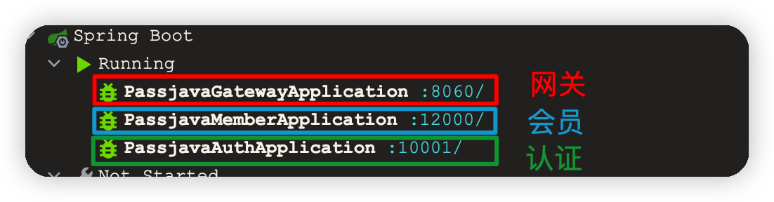 启动以下三个微服务,分别为网关、会员、认证服务。