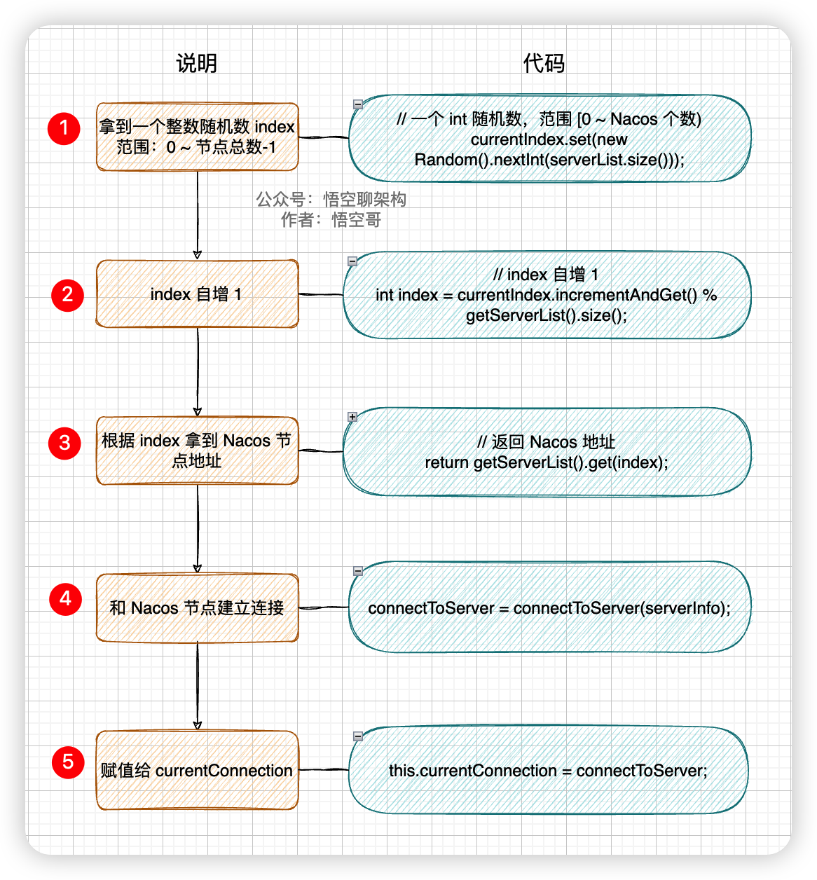小结:客户端生成一个随机数,然后通过这个随机数从 Nacos 服务列表中拿到一个 Nacos 服务地址返回给客户端,然后客户端通过这个地址和 Nacos 服务建立连接。Nacos 服务列表中的节点都是平等的,随机拿到的任何一个节点都是可以用来发起调用的。