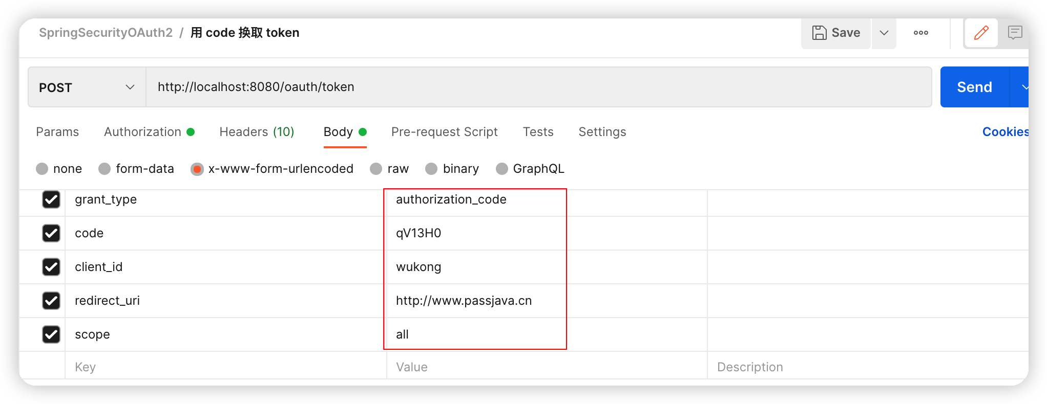 我们用 postman 模拟第三方发起换取 token 的请求。
