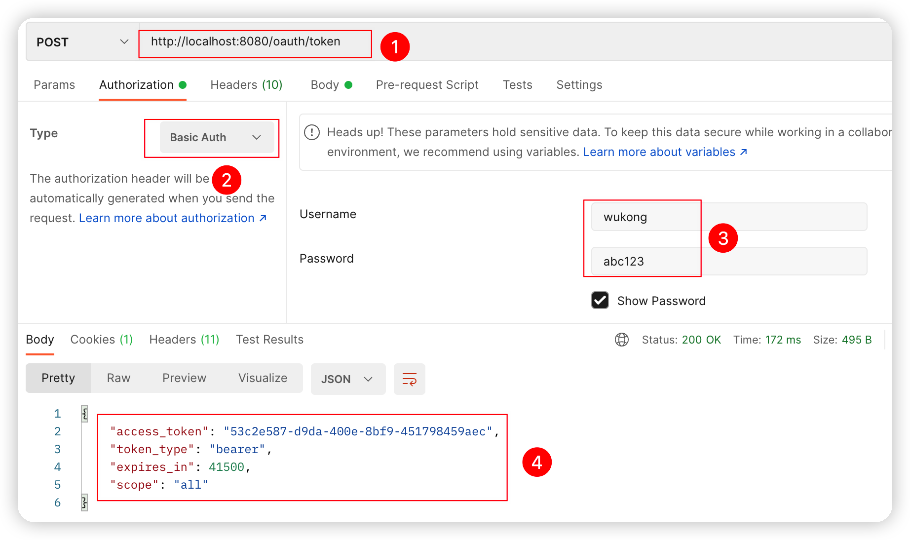 虽然输错了密码,但是 code 不会被用掉,所以当我们用正确的密码 112233 后,就能正常获取到 token 了,而且这次 code 就会作废了。