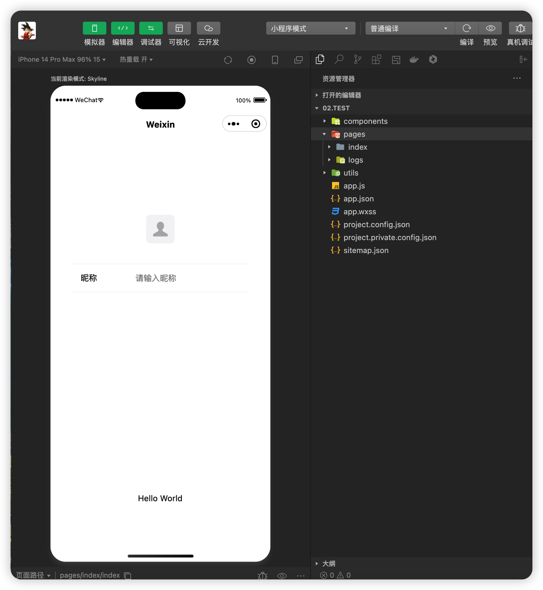 这次我们选择一个最简单的模版,看看 CodeBuddy 能帮我们做到什么程度。如下图所示,只有一个获取头像和昵称的界面。