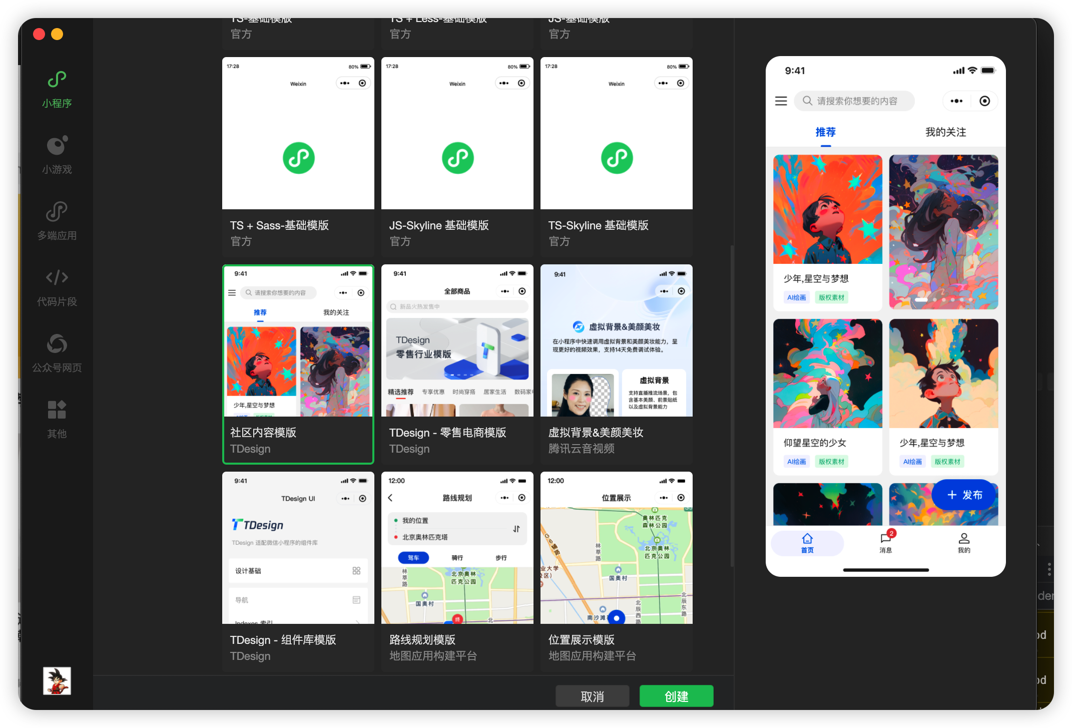 生成一个小程序模版