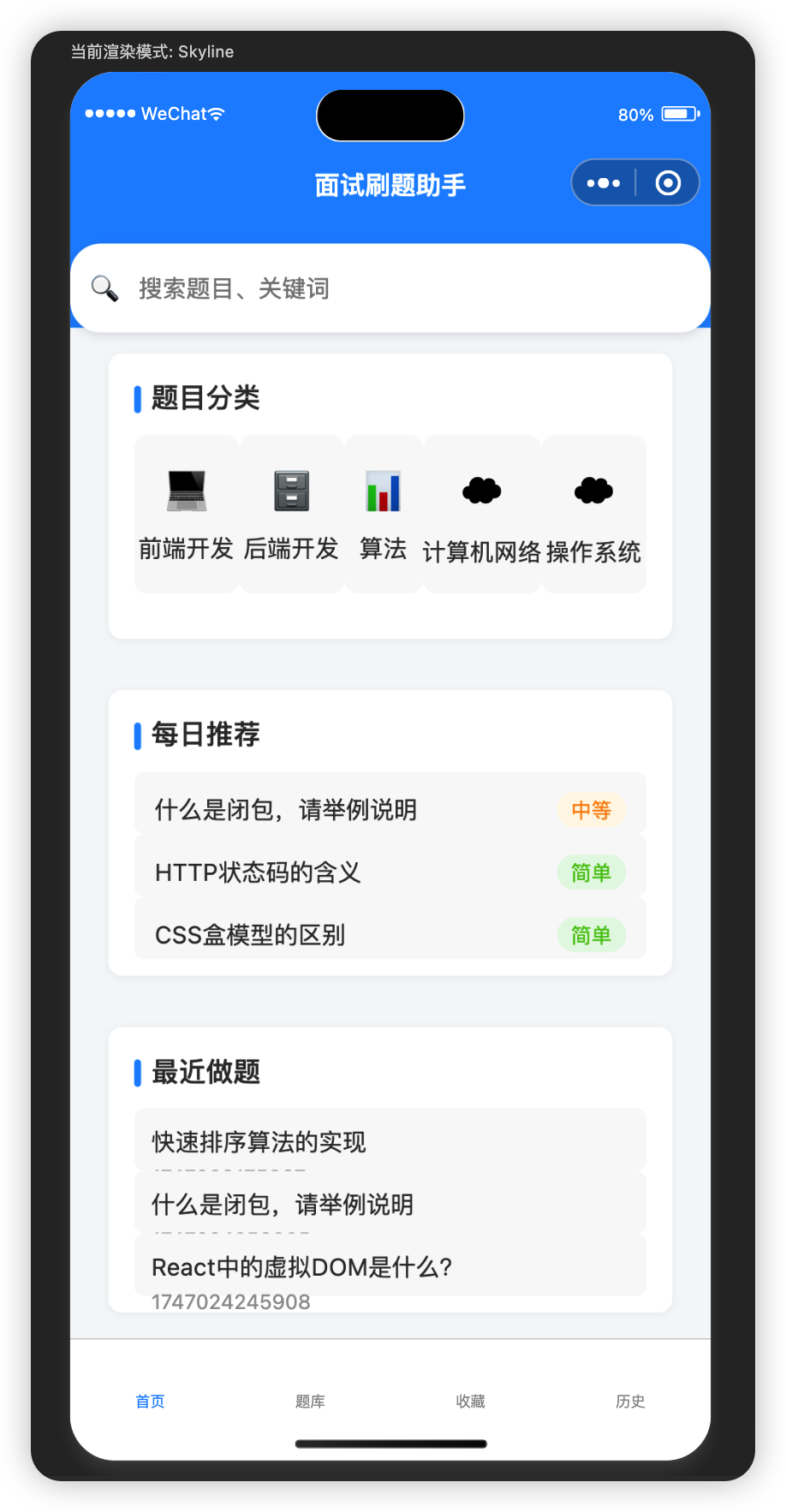 这次我想通过 CodeBuddy 代码助手来实现一个简易版的面试刷题小程序。