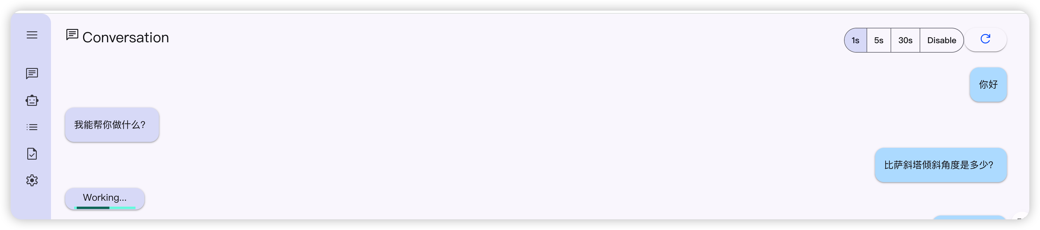 当我提问 比萨斜塔的倾斜角度问题时,AI 卡在 Working 状态。