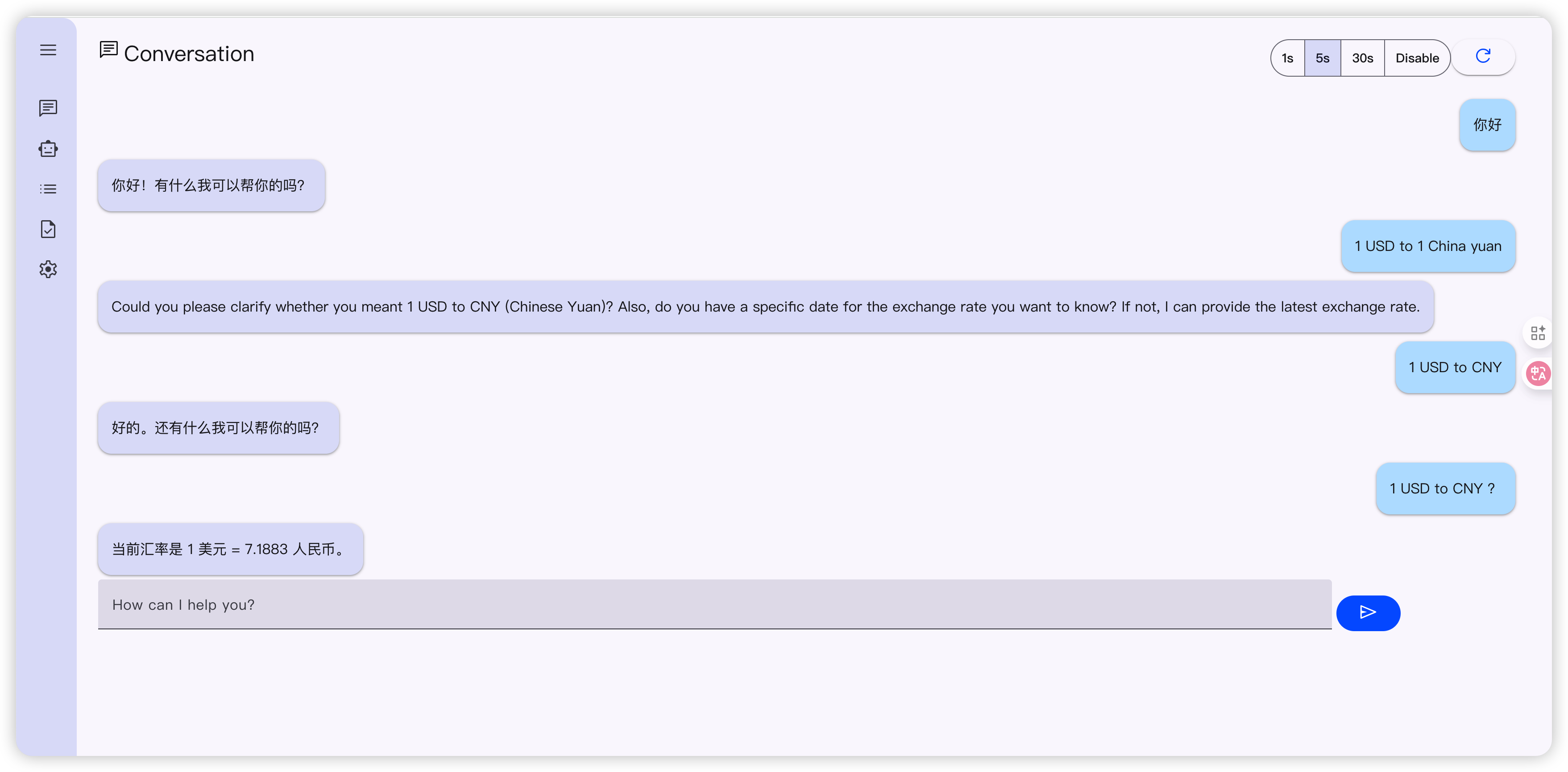该 Agent 能够实时的访问各种国家的货币汇率信息。