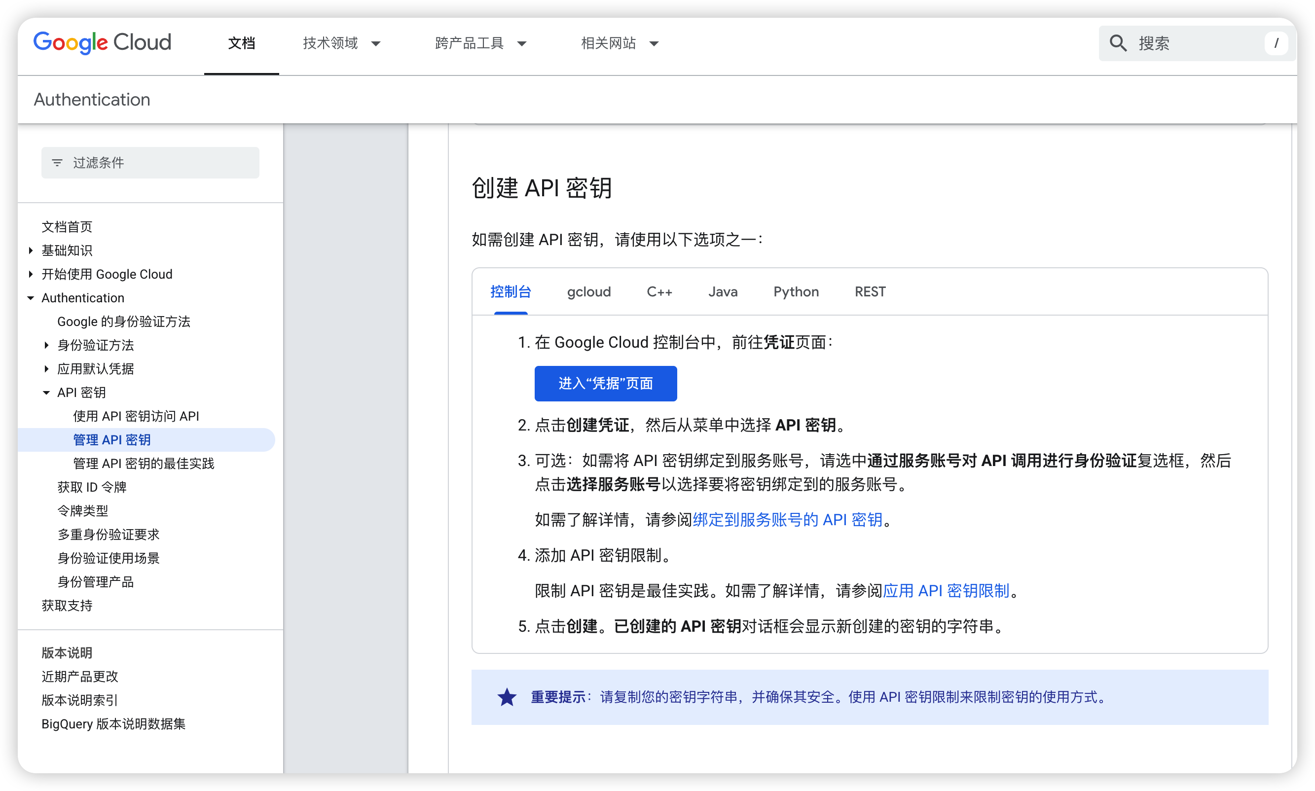 https://cloud.google.com/docs/authentication/api-keys?hl=zh-cn