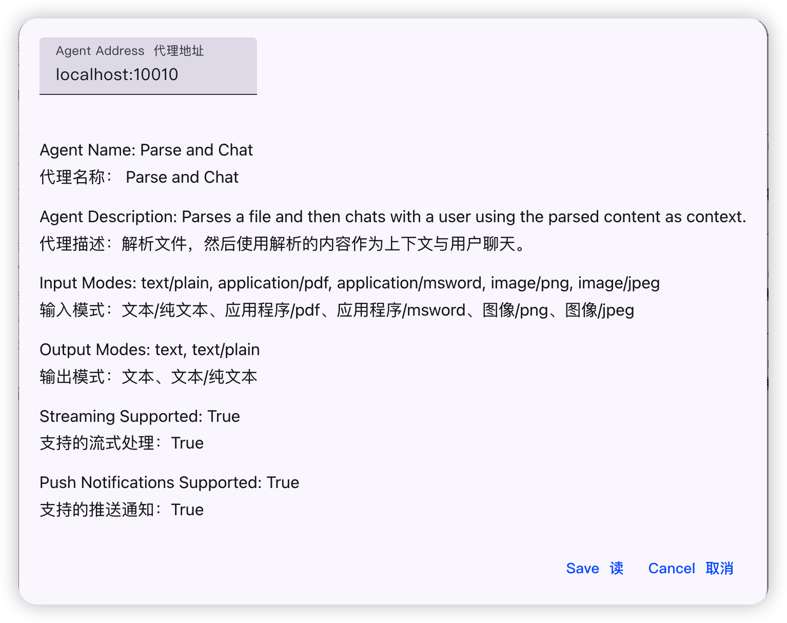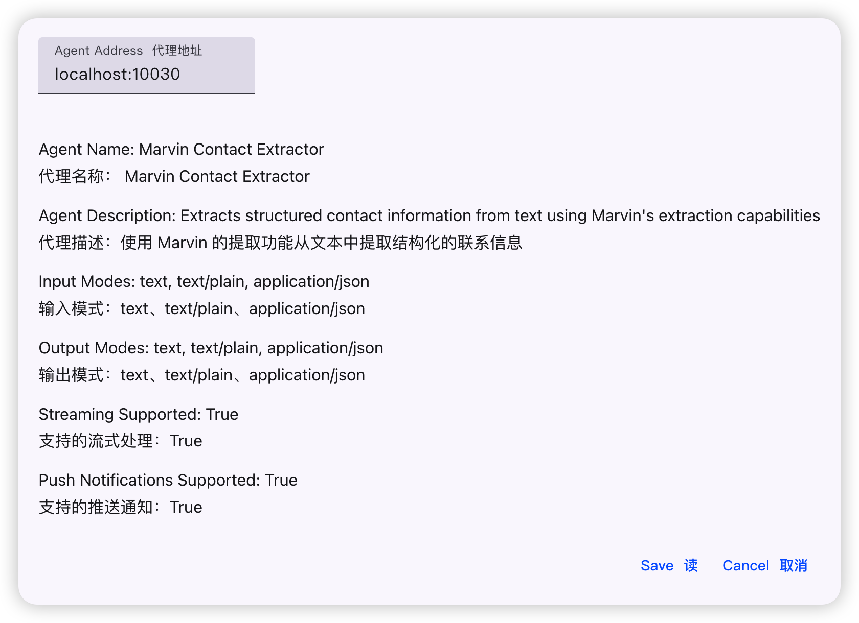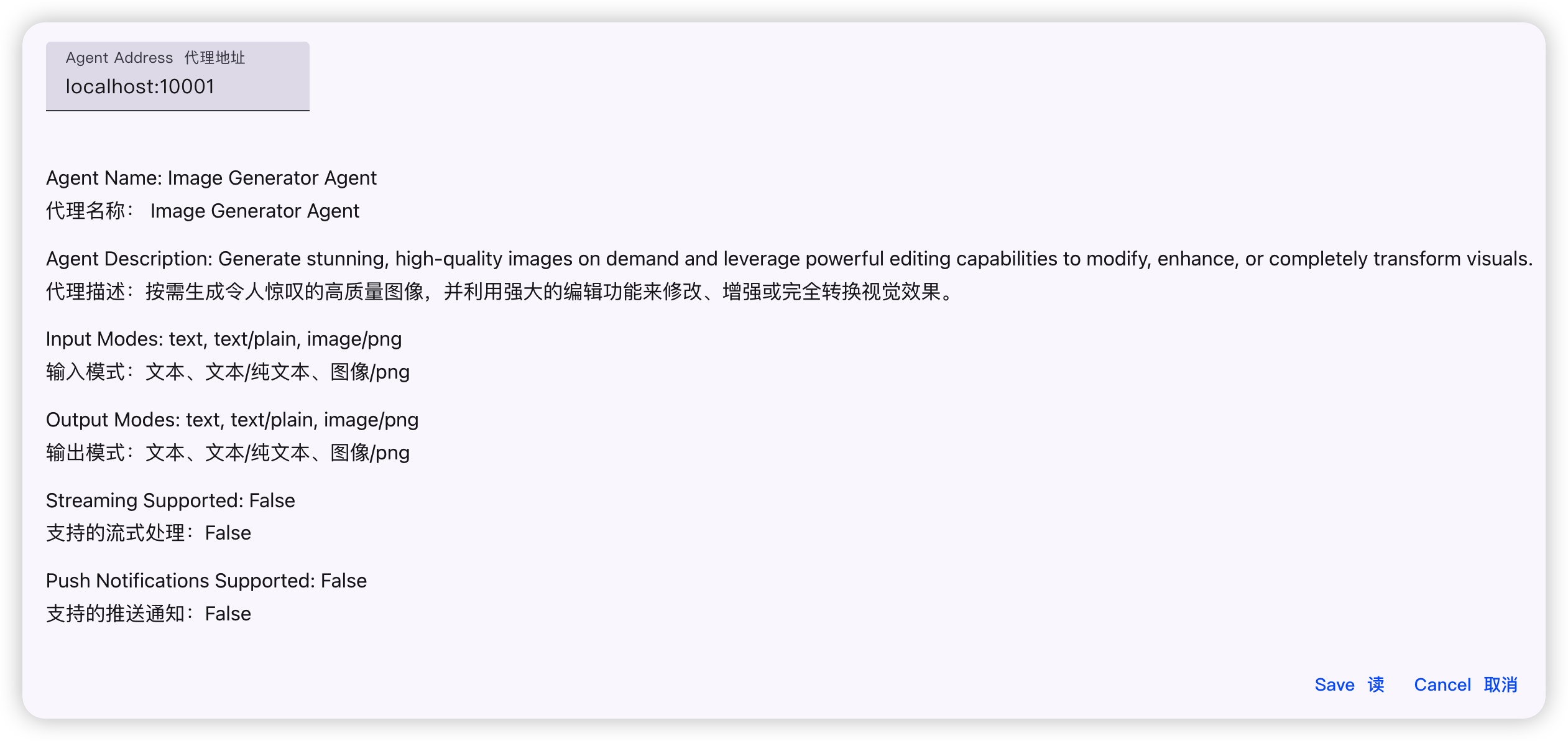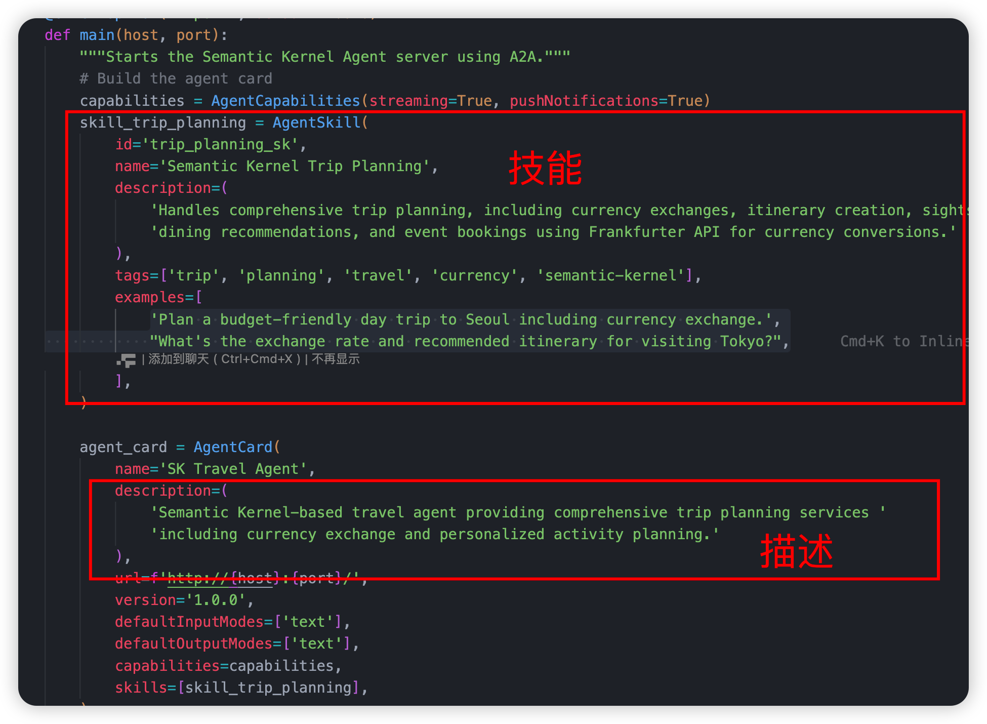 Agent Card 中的 Description 和 Skill 有对应的说明。