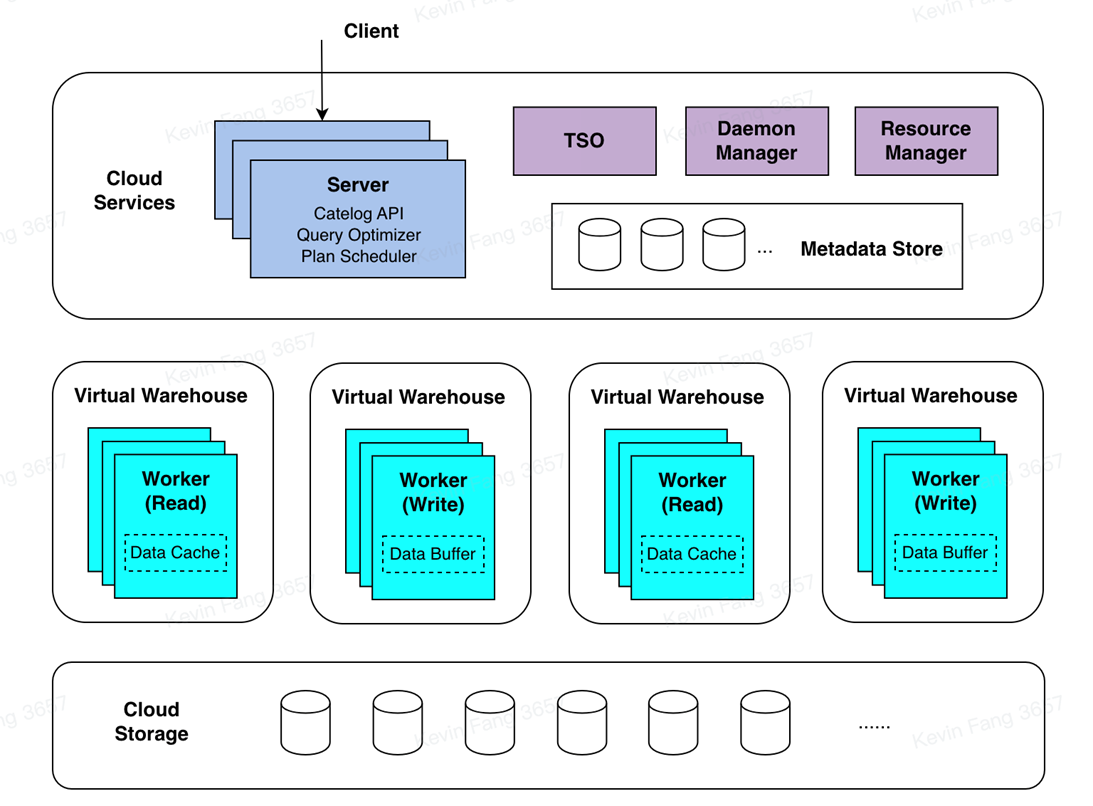 ByConity 大体上可以分为 3 层:服务接入层,计算层和存储层。服务接入层响应用户的查询,计算层负责计算数据,存储层存放用户数据。