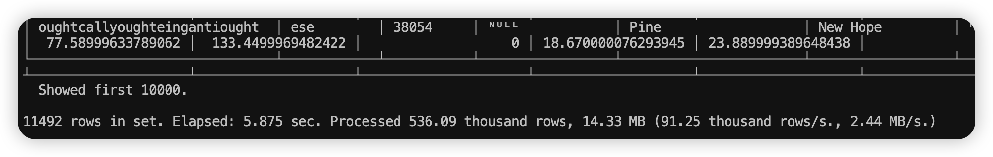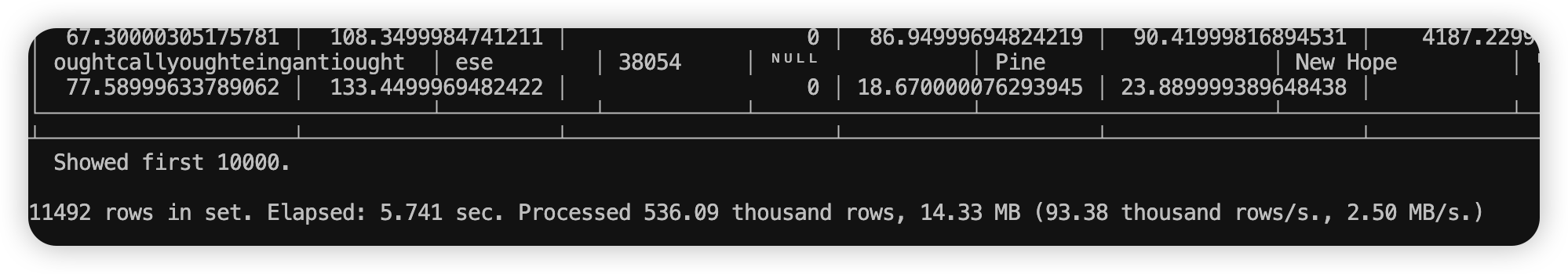 然后回车就会开始执行查询。查询 14W 数据只用了 0.735s,速度还是非常快的。
