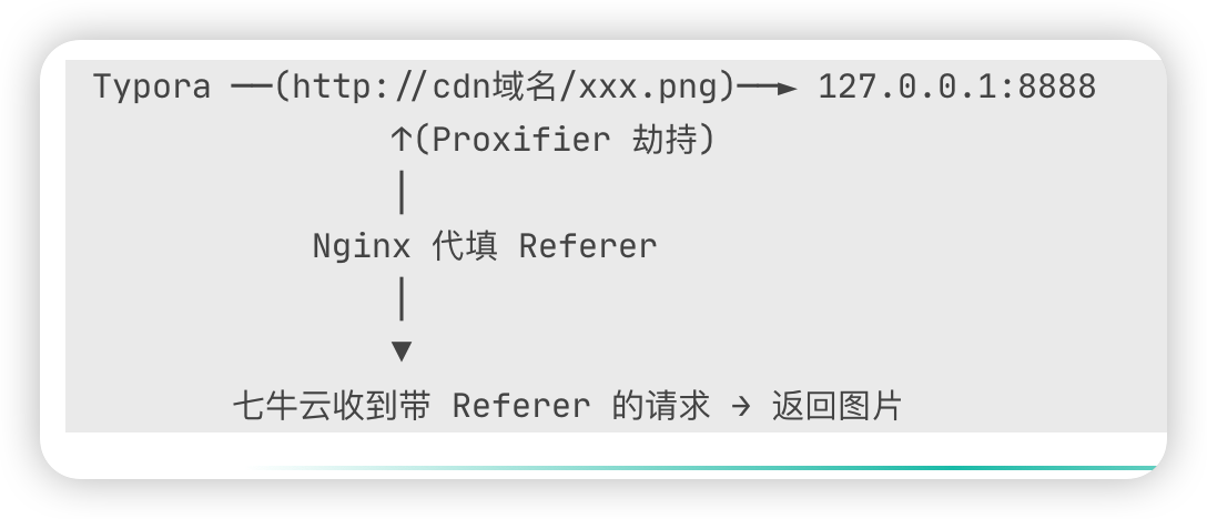拦截 typora 中访问 cdn 图片的请求,并将请求发送给本地的 8888 端口。