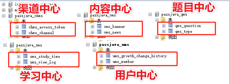 数据库文件在 \data\sql 目录,需要都执行。执行成功后,业务表总共有 5 个业务模块, 7 张表,如下图所示: