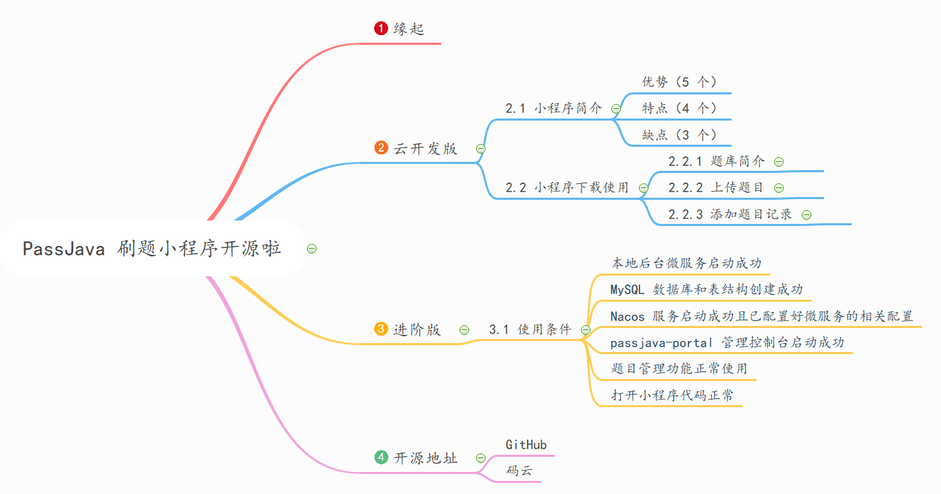 PassJava 开源项目是一个面试刷题的开源系统,后端采用 Spring Cloud 微服务可以用零碎时间利用小程序查看常见面试题,夯实Java 技术栈,当然题库不限于 Java,还有微服务。