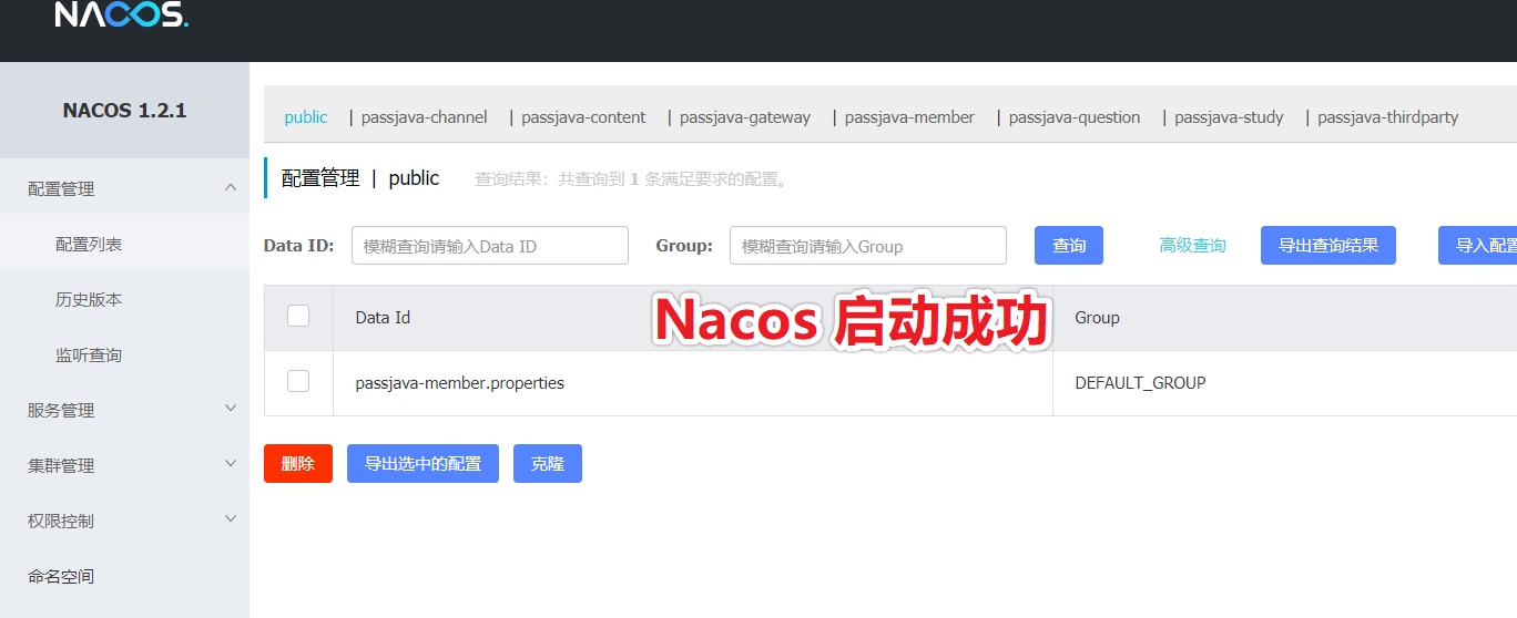 如何配置可参考前面的文章。访问地址:http://192.168.56.1:8848/nacos。访问 Nacos,并登陆 Nacos 后,如下图所示:
