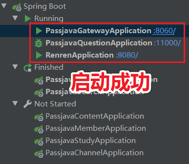 目前要求 passjava-gateway、passjava-question、RenrenAplication 启动成功。