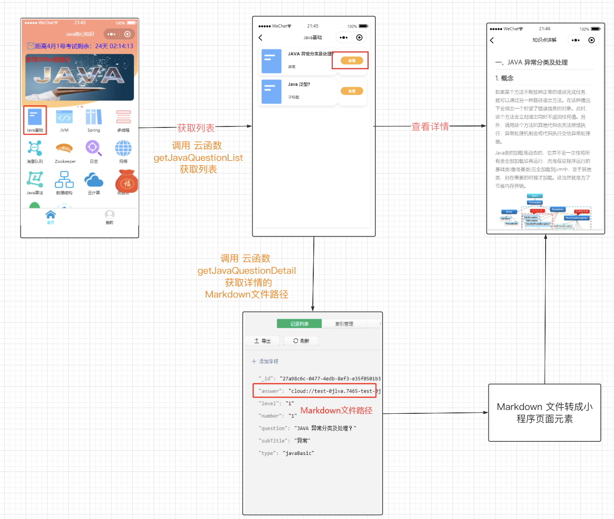 2)调用 自己编写的云函数 getJavaQuestionDetail 获取详情的 Markdown文件路径;