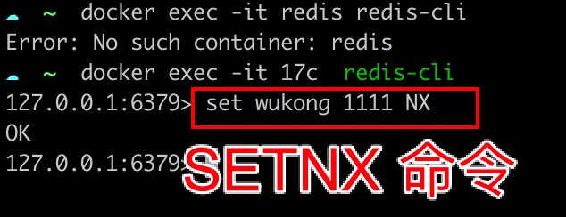 我们可以进到 redis 容器中来试下 SETNX 命令。