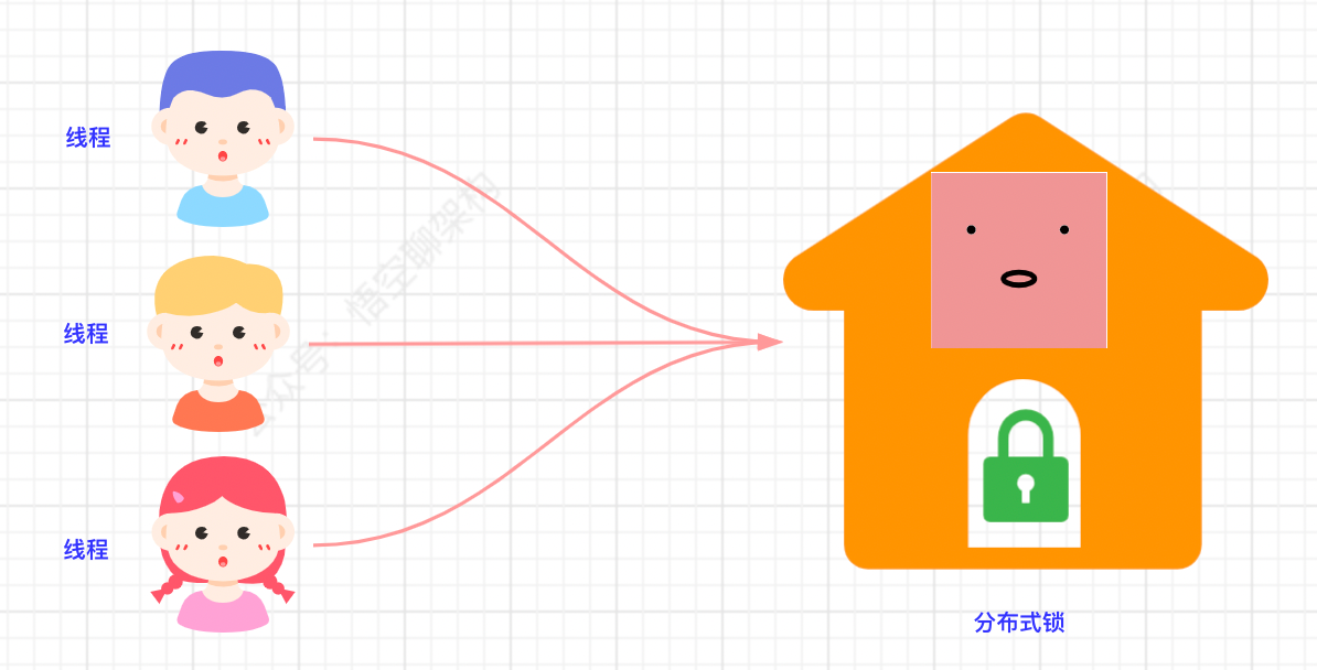 生活中的案例:可以把锁看成房门外的一把锁,所有并发线程比作人,他们都想进入房间,房间内只能有一个人进入。当有人进入后,将门反锁,其他人必须等待,直到进去的人出来。
