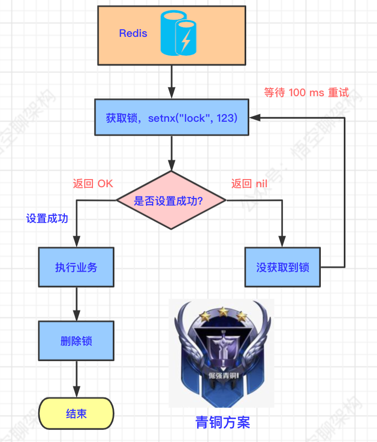 用 Redis 实现分布式锁的几种方案,我们都是用 SETNX 命令(设置 key 等于某 value)。只是高阶方案传的参数个数不一样,以及考虑了异常情况。