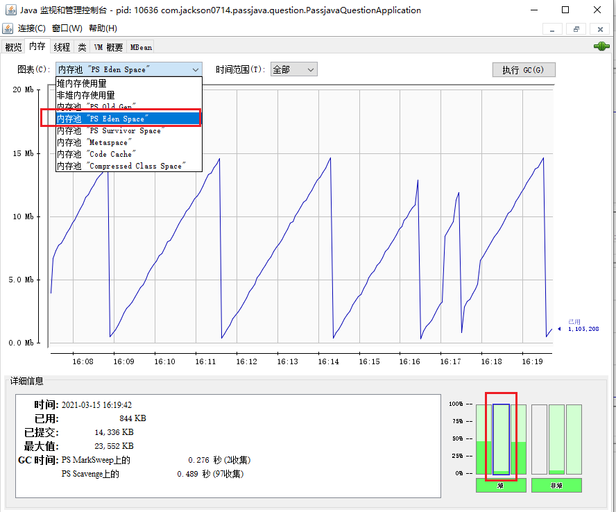下图是实时监控垃圾回收的情况。