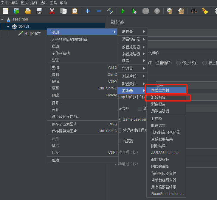 - 添加察看结果树、汇总报告和聚合报告